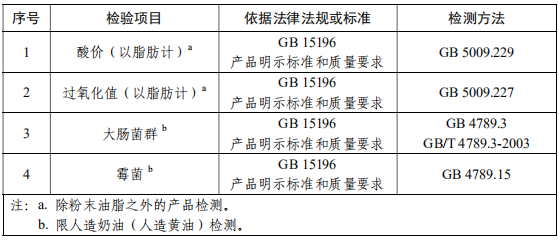 食用油脂制品抽檢項目: